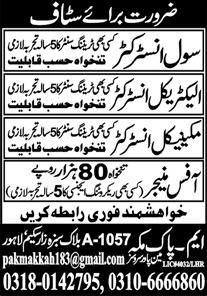 Vacant posts including office manager, mechanical instructor, civil instructor and electrical instructor are announced in M Pak Makkah Manpower Services Lahore, lahore Punjab Pakistan as per 4 December 2022 advertisement in daily Express Newspaper. Candidates with Bachelor, Master and Intermediate etc. educational background will be preferred.