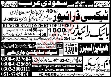 M Pak Makkah Manpower Services is looking for candidates for following posts as per job advertisement published in daily Express Newspaper of September 16, 2024 for location Riyadh, riyadh Saudi Arabia: