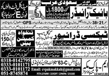 M Pak Makkah Manpower Services invites applications for job positions advertised in daily Express dated 8 May 2024 for following vacancies in Riyadh, riyadh Saudi Arabia.