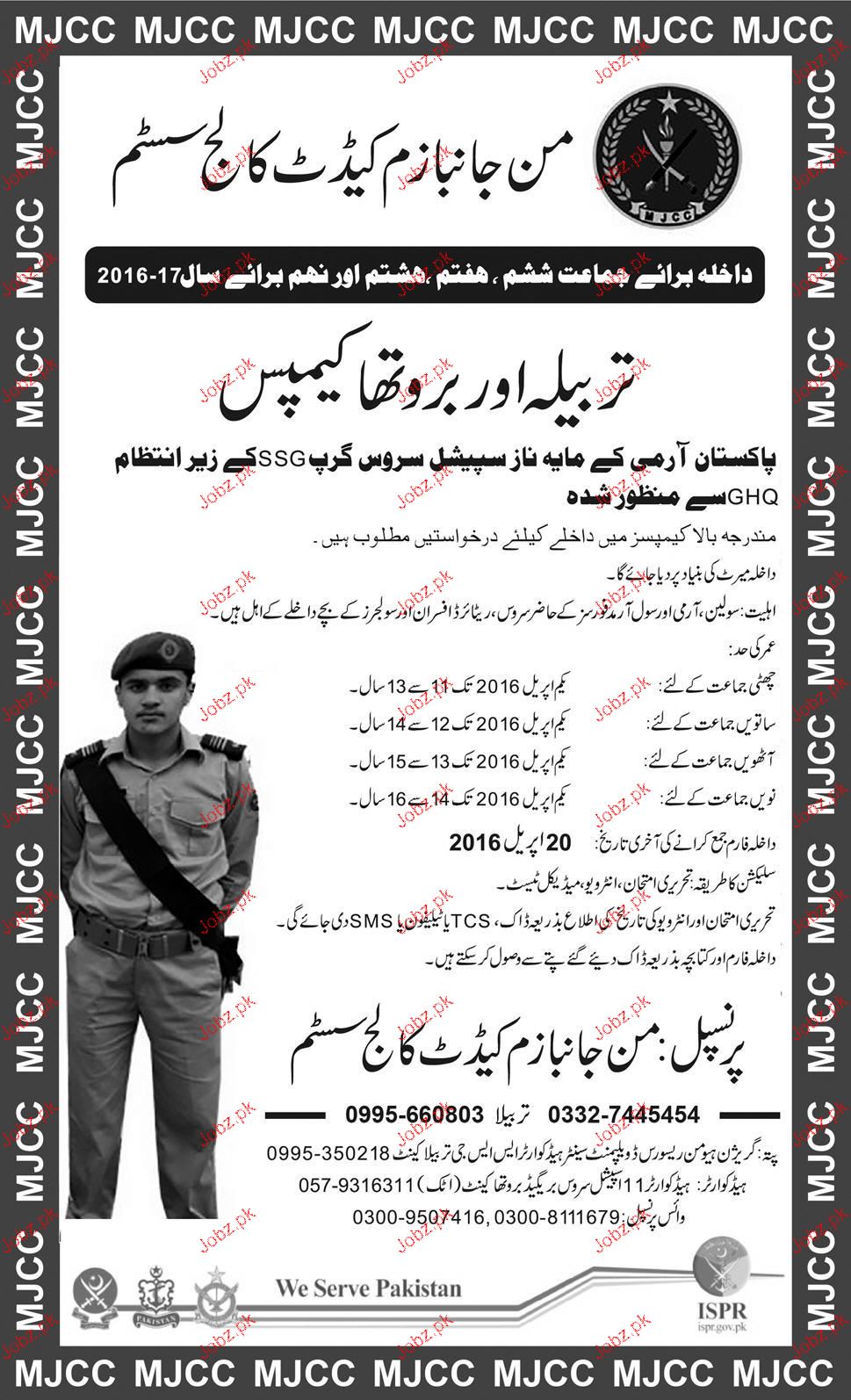 Maanjabaz Cadet College System Admission in Class VI to IX in Terbela. Read newspaper ad for exact details.