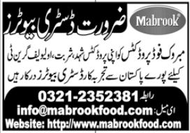 Mabrook Food Lahore, karachi Punjab Pakistan invites applications from eligible candidates for the post of distributors as per advertisement of June 25, 2023 published in daily Jang Newspaper. Persons with Intermediate etc. education can apply.