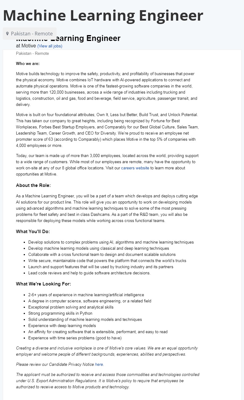 Machine Learning Engineer Jobs In Motive Builds Technologie