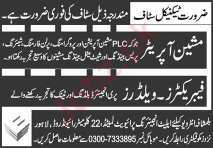 Machine Operator And Welder Jobs 2024 In Lahore