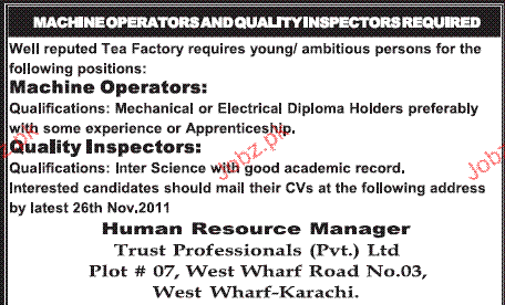 Apply as per details in job advertisement. Login to view further details of how to apply via https://www.jobz.pk online.