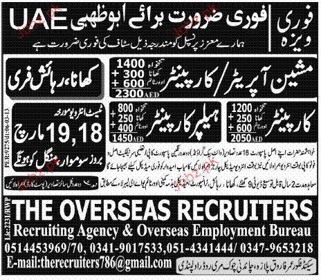 Machine Operators / Carpenters, carpenters Job Opportunity