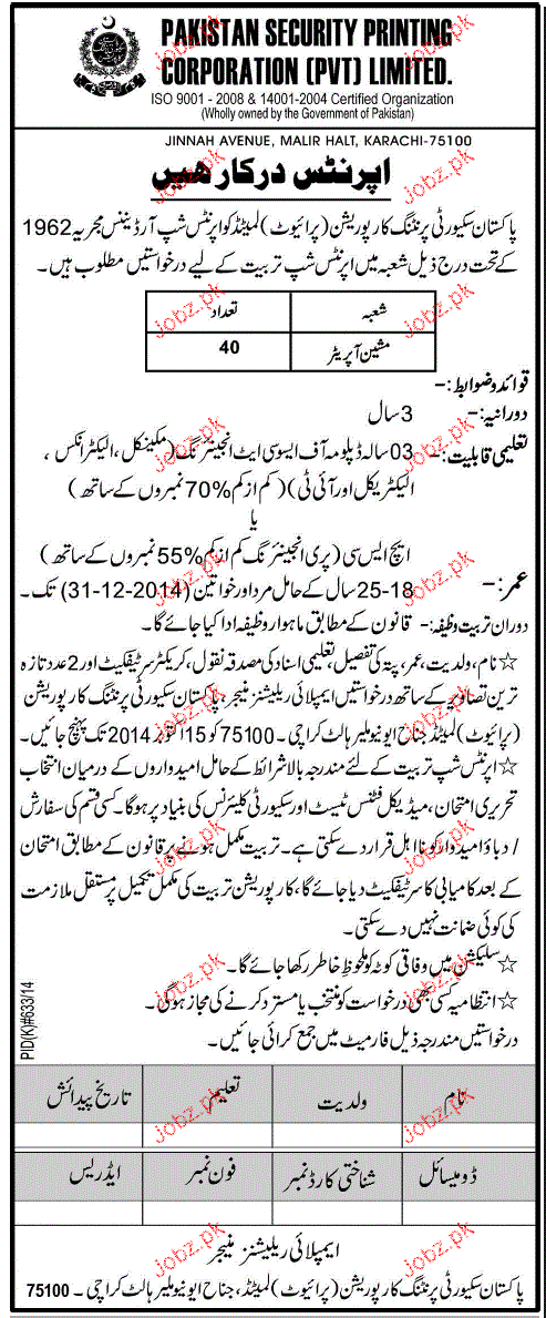 Apply as per details in job advertisement. Login to view further details of how to apply via https://www.jobz.pk online.