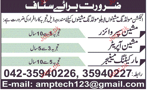 Machine Operators, Supervisors, Mechanics Job Opportunity