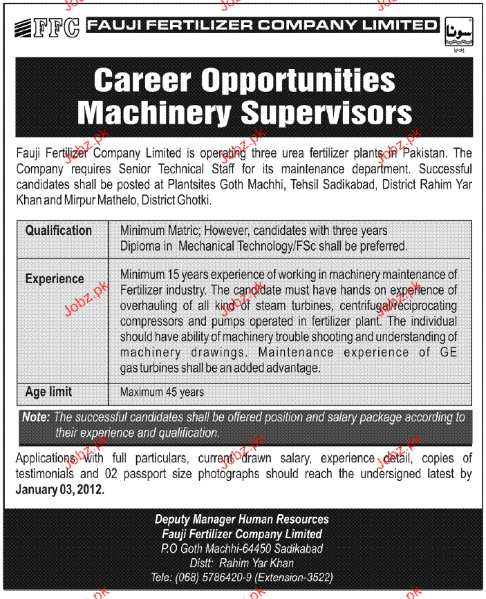 Apply as per details in job advertisement. Login to view further details of how to apply via https://www.jobz.pk online.