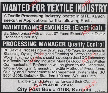 Apply as per details in job advertisement. Login to view further details of how to apply via https://www.jobz.pk online.