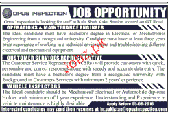 Maintenance Engineers And Vehicle Inspectors Job Opportunity