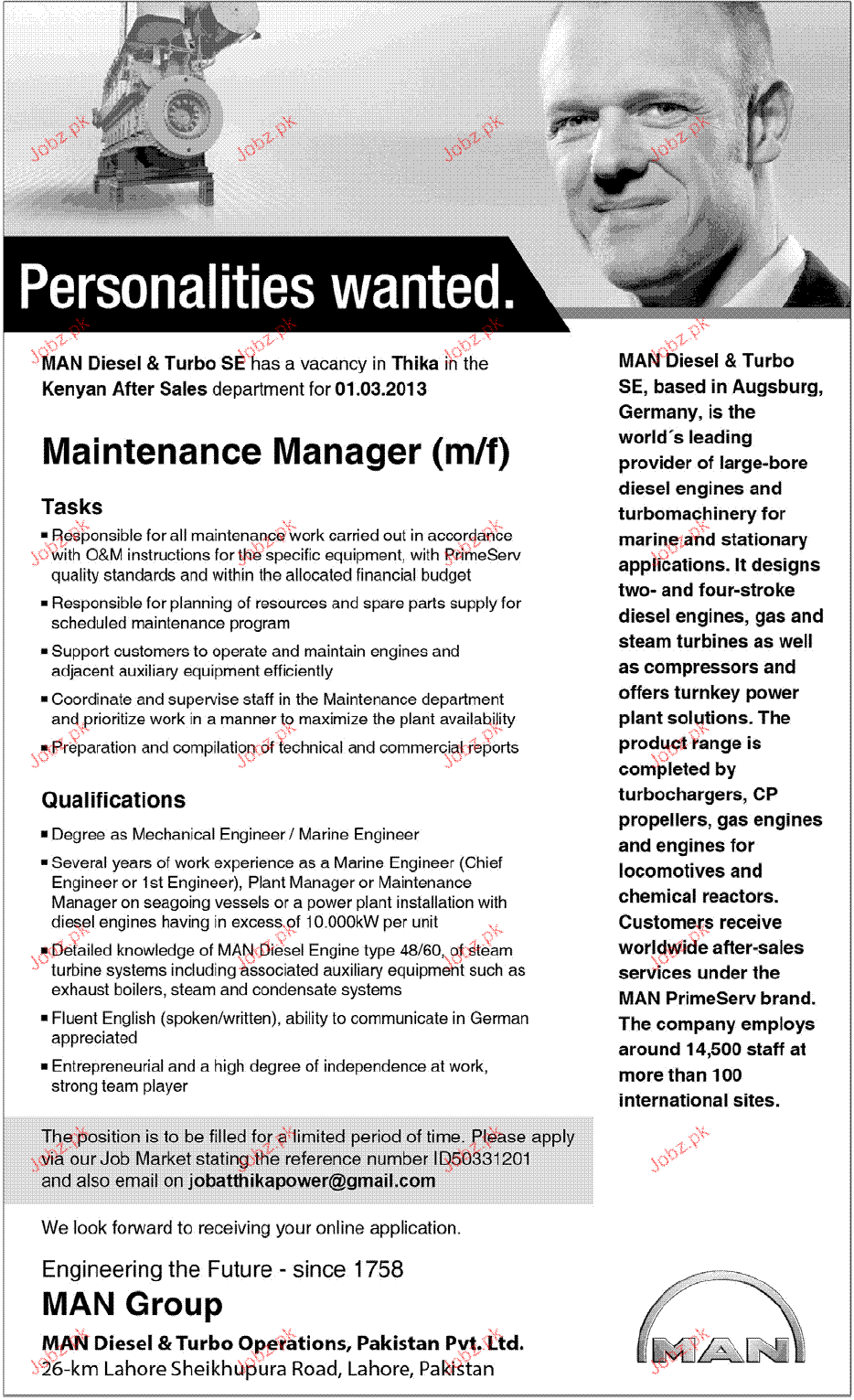 Apply as per details in job advertisement. Login to view further details of how to apply via https://www.jobz.pk online.