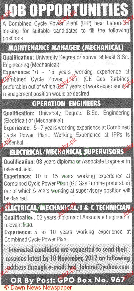Apply as per details in job advertisement. Login to view further details of how to apply via https://www.jobz.pk online.