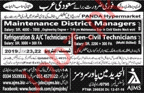Vacancies in Al Jadid ManPower Services Advertisement July 2019