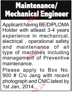 Maintenance / Mechanical Engineers Job Opportunity