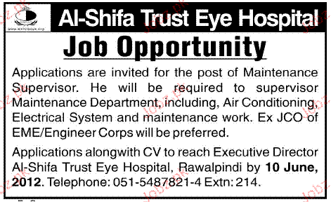 Maintenance Supervisor Job Opportunity