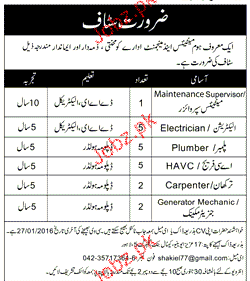 Maintenance Supervisor, Plumbers, Carpenters Job Opportunity