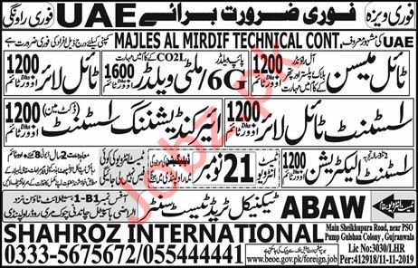 Latest Shahroze International Company Labor Posts UAE 2025