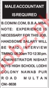 Male Accountant Jobs 2020 In Nishat Boys High School