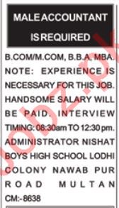 Latest Nishat Boys High School Accounting Posts Multan 2025