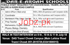 Male Admin Officers, Coordinators Job In Dar E Arqam School