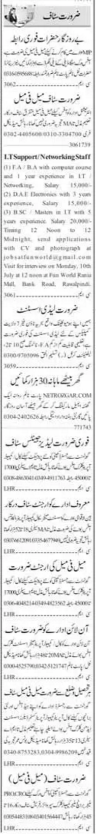 Apply as per details in job advertisement. Login to view further details of how to apply via https://www.jobz.pk online.