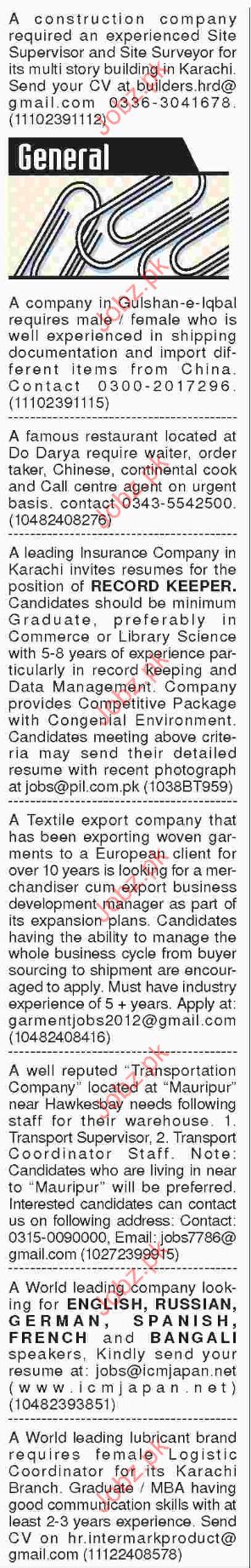 Latest Private Company Admin Clerical Posts Karachi 2025