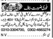 Apply as per details in job advertisement. Login to view further details of how to apply via https://www.jobz.pk online.
