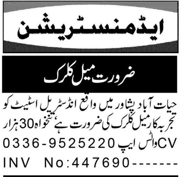 Male Clerk Jobs 2025 In Industrial Estate Peshawar