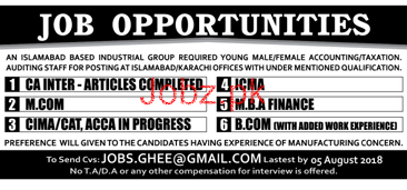 Apply as per details in job advertisement. Login to view further details of how to apply via https://www.jobz.pk online.