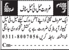 Male & Female Computer Operator Jobs 2025 In Quetta