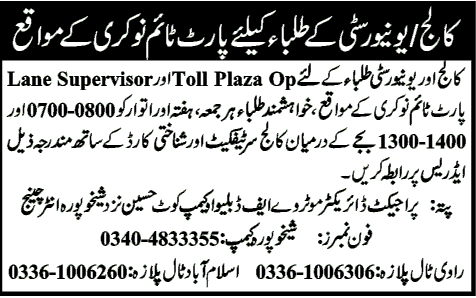 Apply as per details in job advertisement. Login to view further details of how to apply via https://www.jobz.pk online.