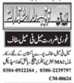 Apply as per details in job advertisement. Login to view further details of how to apply via https://www.jobz.pk online.