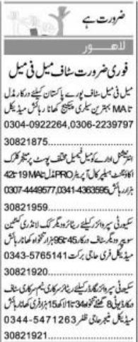 Private Company is looking for candidates for following posts as per job advertisement published in daily Express Newspaper of July 16, 2022 for location Lahore, lahore Punjab Pakistan: