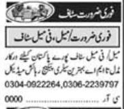Private Company invites applications for job positions advertised in daily Khabrain dated 6 October 2022 for following vacancies in Lahore, lahore Punjab Pakistan.