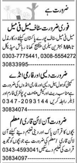 Vacant posts including qaria, female office staff, office staff, qari and quran teacher are announced in Private Company Peshawar, peshawar Khyber Pakhtunkhwa KPK Pakistan as per 12 November 2022 advertisement in daily Express Newspaper. Preferred Education is Bachelor, Matric, Intermediate and Middle etc.