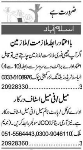 Male & Female Office Staff Jobs 2024 In Islamabad
