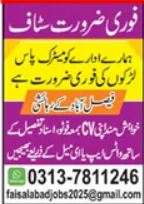 Male & Female Office Staff Jobs 2025 in Faisalabad