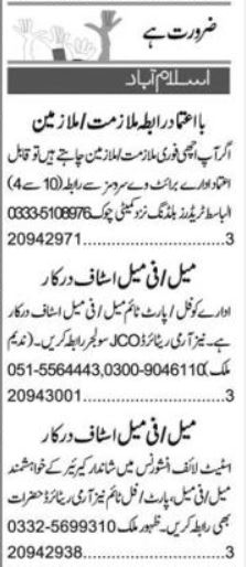Todays New Jobs in Islamabad