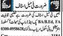 Apply as per details in job advertisement. Login to view further details of how to apply via https://www.jobz.pk online.