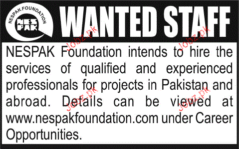Male / Female Staff required in NESPAK Foundation in Lahore.
