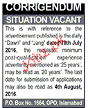 Apply as per details in job advertisement. Login to view further details of how to apply via https://www.jobz.pk online.