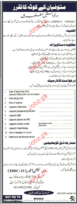Latest Government Admin Clerical Posts Karachi 2025