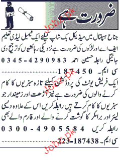 Male / Female Staff required in Lahore