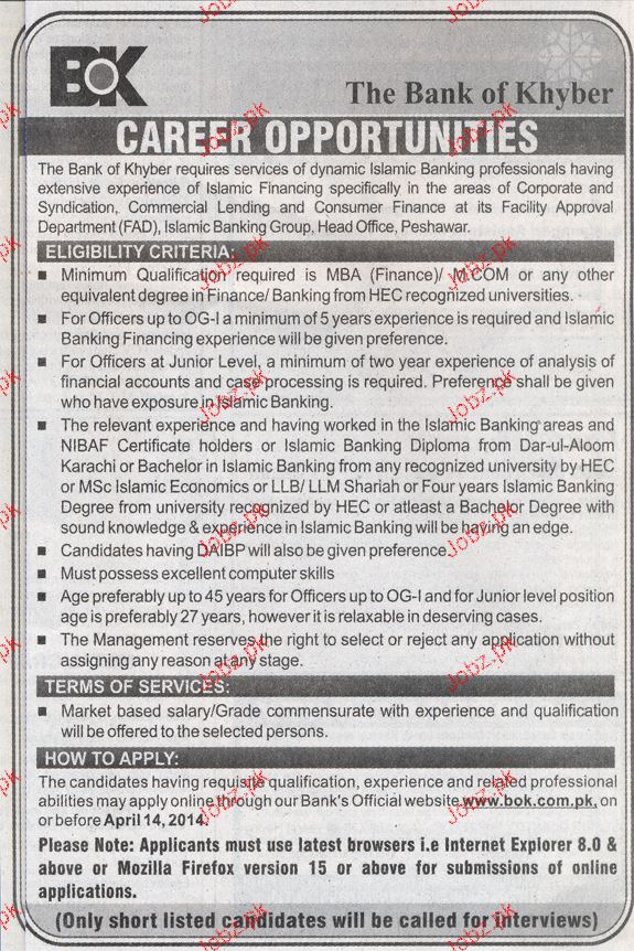 Apply as per details in job advertisement. Login to view further details of how to apply via https://www.jobz.pk online.