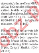Apply as per details in job advertisement. Login to view further details of how to apply via https://www.jobz.pk online.
