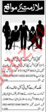 Computer Operator, Call Operator, Telephone Operator, Receptionist, Clerk, Admin Manager, Admin Officer, Assistant Manager, Clerk, Security Guard, Driver, Salesman, Sales Officer, Marketing Officer, Marketing Manager, Security Guard, Office Assistant seeks in well progressive companies,