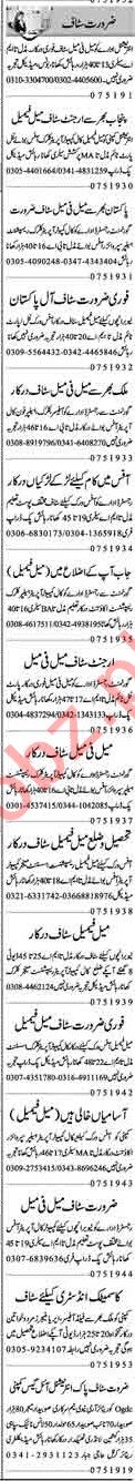 Male & Female Staff Jobs 2019 in Lahore