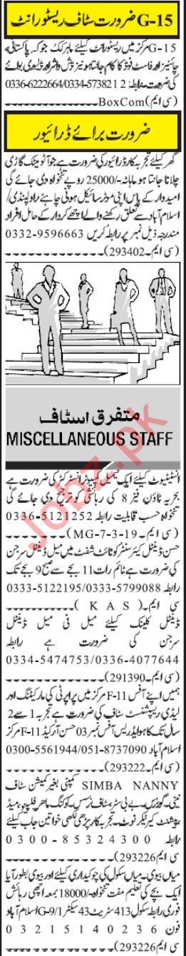 Male & Female Staff Jobs 2019 In Rawalpindi