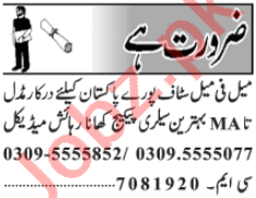 Apply as per details in job advertisement. Login to view further details of how to apply via https://www.jobz.pk online.