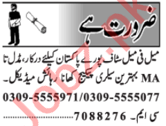 Male & Female Staff Jobs 2020 In Lahore